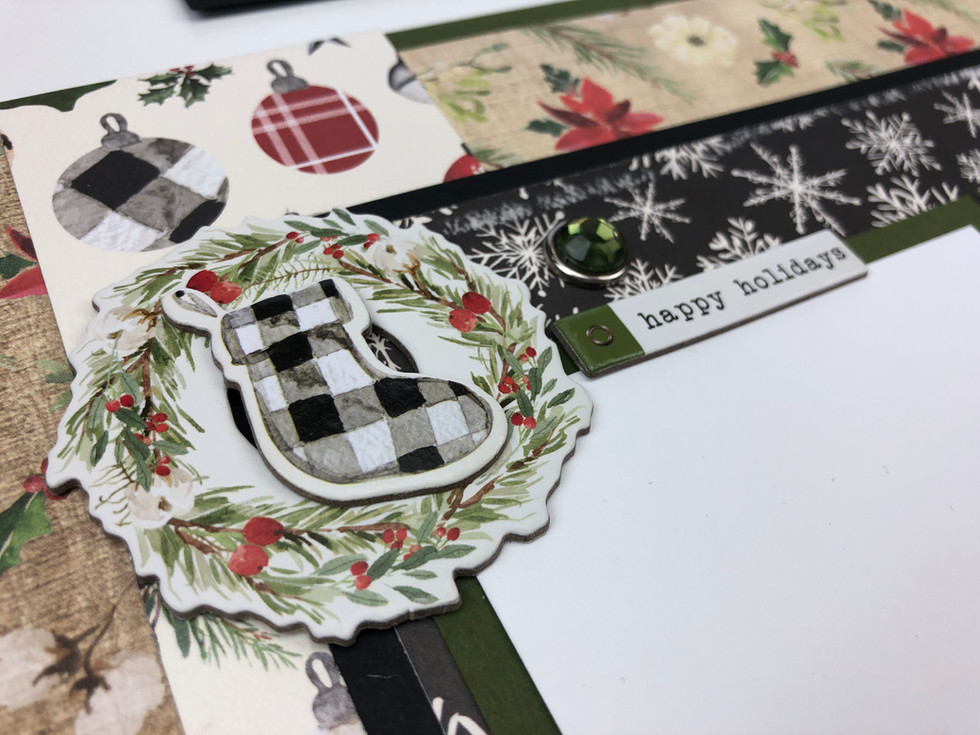 This 4--page tutorial has the classic green and red colors along with a touch of woodgrain papers and accents. The deer also ties in a woodsy country feel to this collection. It is gorgeous and matches the decor and atmosphere in our home. I know once I put pictures on my pages these pages will be easy to use up.