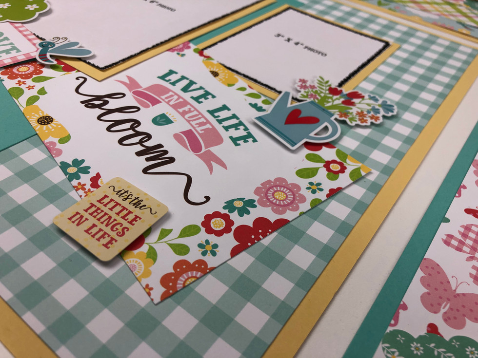 Create 4 spring themed 12" x 12" scrapbook pages using the Echo Park Spring Fling Collection.