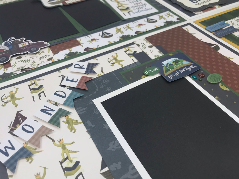 Create 6 beautiful 12" x12" scrapbook pages using the Echo Park Adventure Awaits Collection.